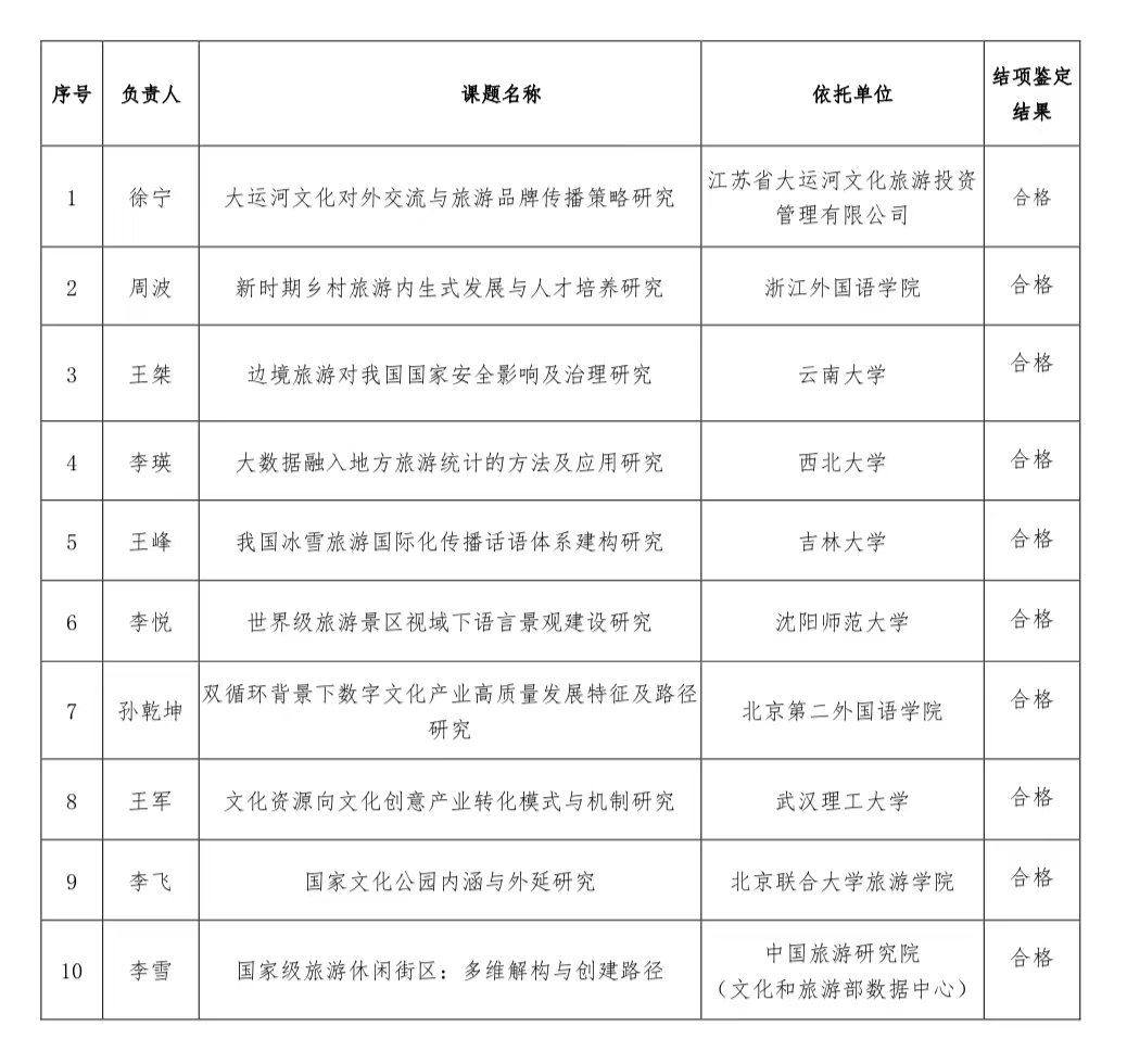 Notice on the Results of the Appraisal of the 2021 Macro Decision making Project on Culture and Tourism