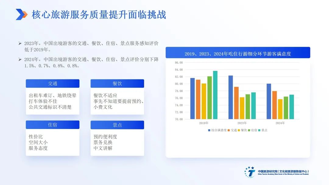 未来,中国出境游客满意度的持续提升仍需直面安全感知提升、核心旅游服务提质、公共服务与平台服务强化等诸多挑战。