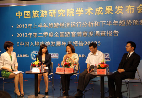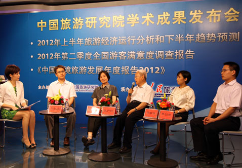 2012年7月12日,由中国旅游研究院主办,人民网旅游频道协办的中国旅游研究院2012年第二季度学术成果发布会在京举行,中国旅游研究院戴斌院长、中国社会科学院旅游研究中心主任张广瑞教授、联合国世界旅游组织旅游专家委员会委员徐汎教授、北京联合大学旅游学院副院长张凌云教授、北京第二外国语学院旅游管理学院副院长谷慧敏教授等出席会议。来自人民日报、新华社、中央电视台、中央人民广播电台、旅游卫视、中国旅游报、经济日报、中国旅游网、搜狐网、旅行社杂志等媒体机构的代表也参加了发布会。
