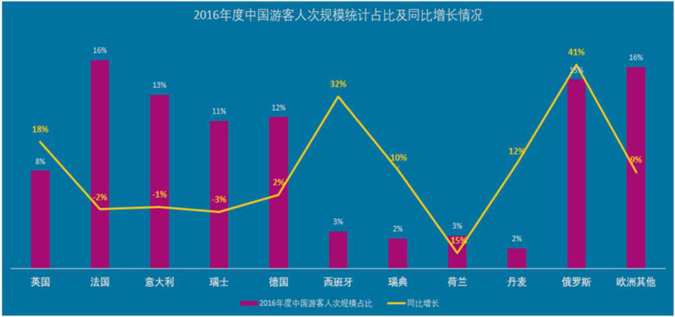 一带一路倡议的实施,使中国游客对欧洲的了解进一步提升;新开航线与包机的增多,让二三线城市的消费者纷纷加入欧洲游的大军;局部恐袭事件并未影响国人的旅游意愿,中国赴欧旅游在2017年再掀热潮。