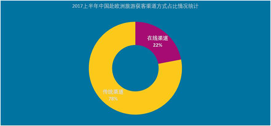 传统旅行社为应对互联网大潮,在积极促进线上线下融合发展,重要举措包括获客渠道在线布局上的加速?;豆媚诓渴菹允?,2017年上半年通过在线渠道客源收客量占比达到22%,与去年同期相比实现了稳步增长。