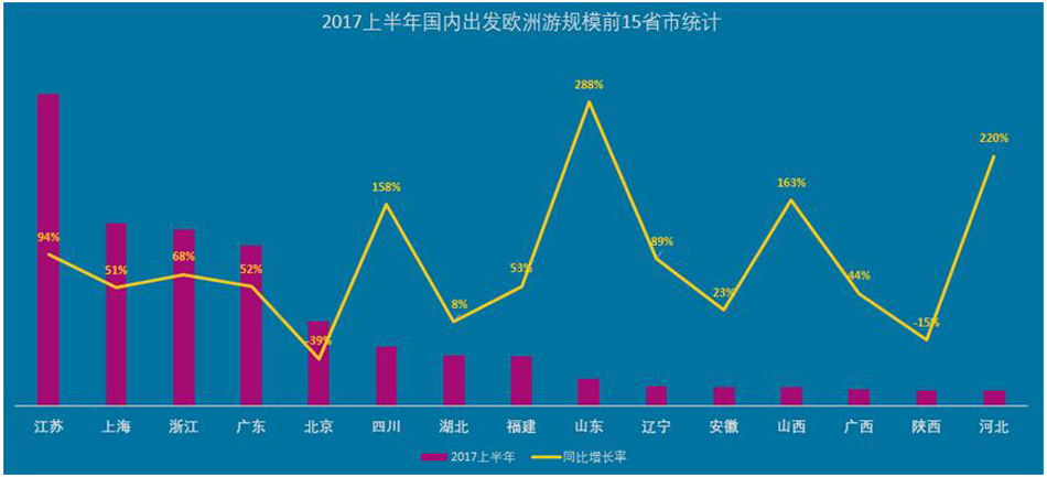 中国旅游研究院联合华远国旅、携程旅游三方共同对今年上半年欧洲旅游的市场规模与增长趋势、出发省市及目的地国家人气情况、消费者特征与偏好等进行了研究分析,基于携程旅行网、华远国旅交易数据,联合发布《2017上半年中国赴欧洲旅游趋势报告》。