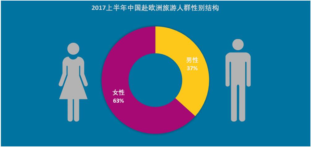1、赴欧洲旅游女性占比63%,欧洲游的女性主导现象愈加显著
