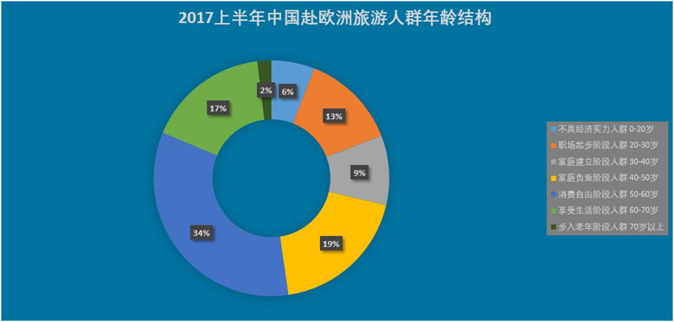 赴欧洲游50岁以上游客占比超过50%,继续主导欧洲游市场。这与该年龄段人群所处的职业阶段、人生阶段、家庭阶段等有着正向的密切关系。