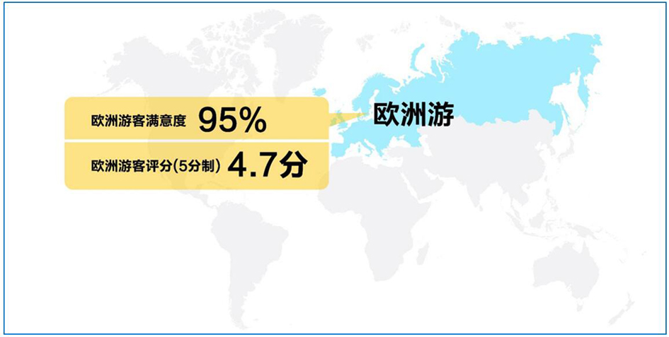 6、欧洲游的游客满意度达95%,对产品与服务的评分高达4.7分