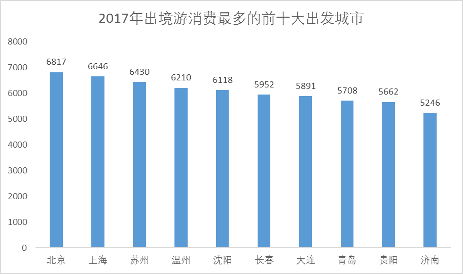 哪些城市的市民出境游平均花费最高?携程跟团游、自由行数据显示:2017年人均花费最高的十大城市分别是:北京、上海、苏州、温州、沈阳、长春、大连、青岛、贵阳、济南。他们用于购买出境跟团游、自由行产品的花费位居全国前列。其中,北京以6817元位居第一,其次是上海、苏州、温州。