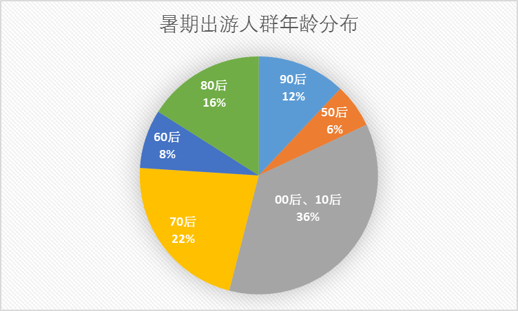 据携程旅游订单数据,暑期出游人群中36%是00后、10后,他们的父母辈70后、80后以22%、16%的占比排名第二、第三。