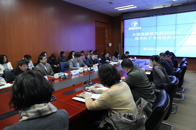 上午,戴斌同志在2018年领导班子考核述职会上代表院领导班子从加强党的建设和巡视整改工作、文化和旅游融合发展研究、文献建设年成果等方面对2018年工作进行了全面总结,并对2019年工作思路进行了重点部署,将“文化建设”作为全院年度工作主题,加强新时期文化和旅游融合研究、文化和旅游统计数据体系建设等。