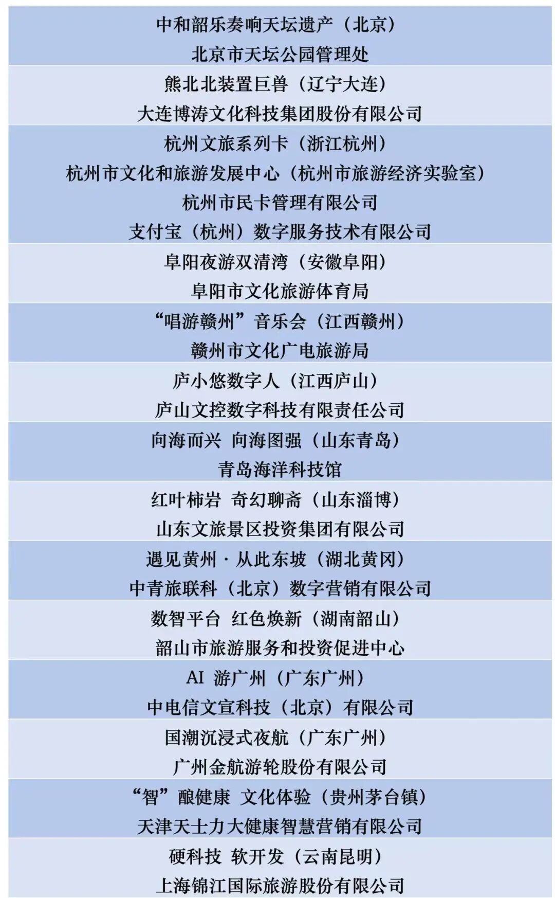 20251210-12日,2025中国旅游集团化发展论坛在京召开。论坛由中国旅游研究院联合中国旅游协会主办,主题为打造支柱产业,推动高质量发展。经广泛征集,研究团队初评、专题会评议等规范流程,活动期间发布了《文旅融合科技赋能旅游产品创新范例》,名单如下: